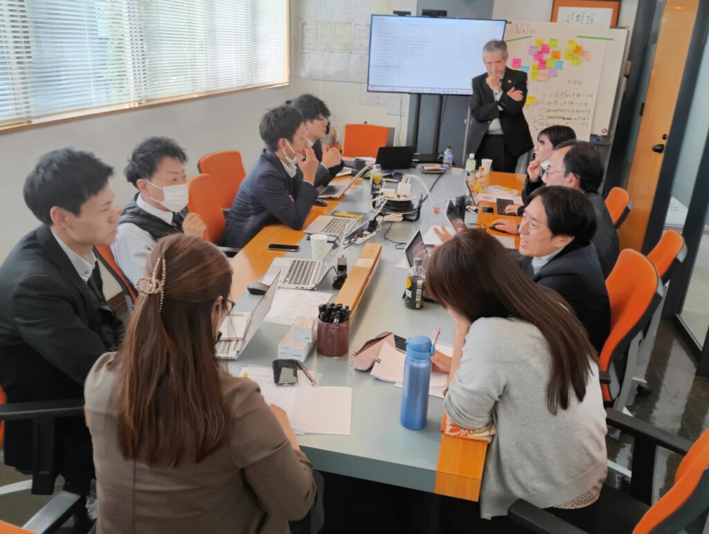昨日11月26日(水)福岡県に本社を置きます顧問先の医療ITソリューション会社様で、第3回社員研修を開催させていただきました。最初のワークショップで、喜多川泰さんの月刊講演新聞の記事「しなければを楽しく」 について、感想を一人ずつ発表し、熱く議論しました。次のワークショップで、当社の「人材採用戦略の現状」について、一人一人意見を発表し、今後のアクションプランを抽出しました。最後のワークショップでは、当社成長のための「背骨・経営理念」の作成ワークを行い、当社の「ミッション(0版)」について、全員から意見を発表いただきました。社長はじめ皆さんド真剣に参加いただきありがとうございました。